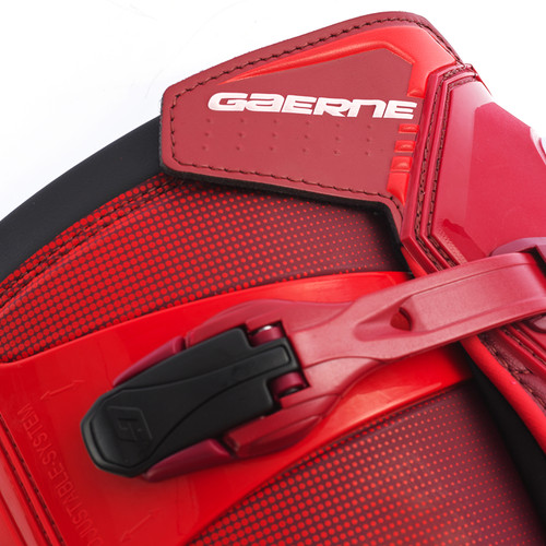 This innovative boot has a sleek new look.Partially due to the exclusive gaerne “wrap around” ankle pivot system.This new, lightweight feature allows the rider more ankle support while at the same time gives you a comfortable fit.New alloy buckles, by removing the first two buckles on the top it is possible to make the opening wider to accommodate a bigger leg or knee-brace.Heavy duty burn guard, toe bumper and the trademark gaerne “enduro” sole complete the task.